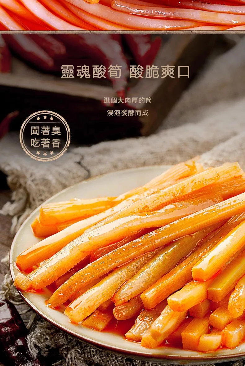 4. 酸筍包:酸筍是螺螄粉獨特風味的靈魂,選用筍身飽滿、肉質厚實的大頭甜筍,經浸泡發酵製成,酸香鮮脆、口感絕佳。