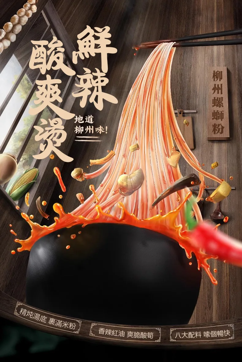 李子柒螺螄粉呈現正統道地的柳州風味,辣椒油香氣濃郁、辣感溫潤不燥口,酸筍則酸香鮮脆、口感清爽。湯底以 20 多種天然食材細火慢燉,滋味醇厚濃郁;米粉採用陳米細磨工藝製作,粉體 Q 彈有勁道,搭配 8 種豐富配料,份量十足、風味滿載。